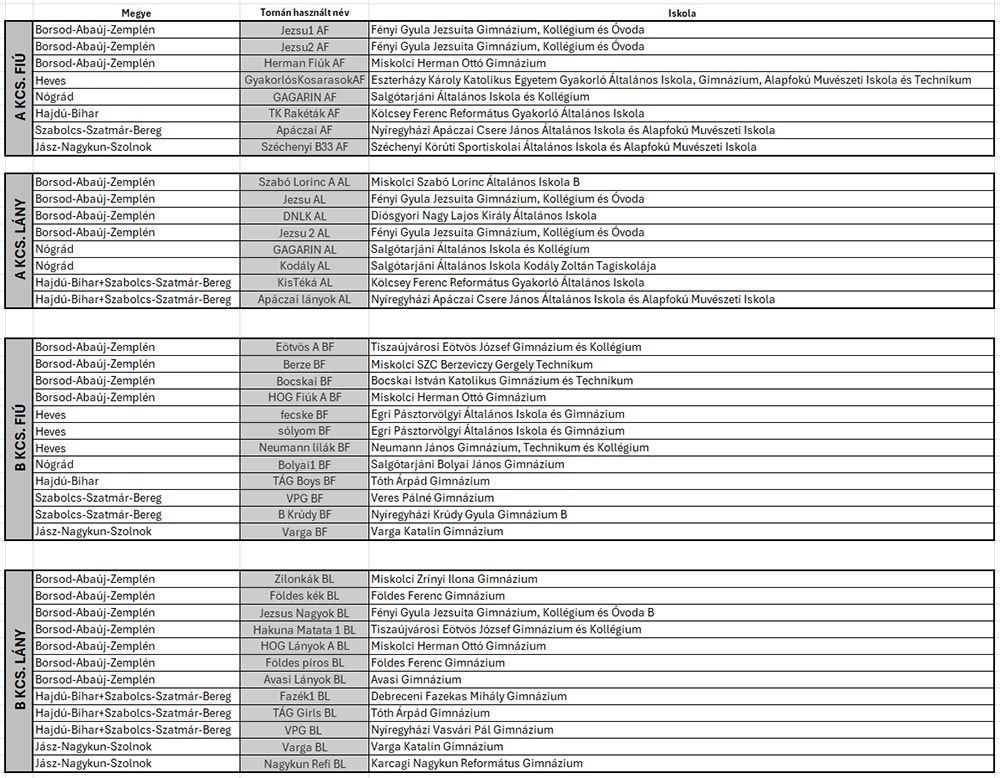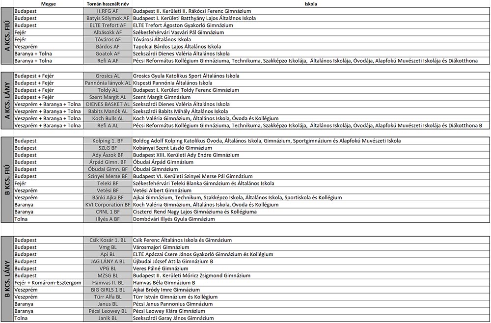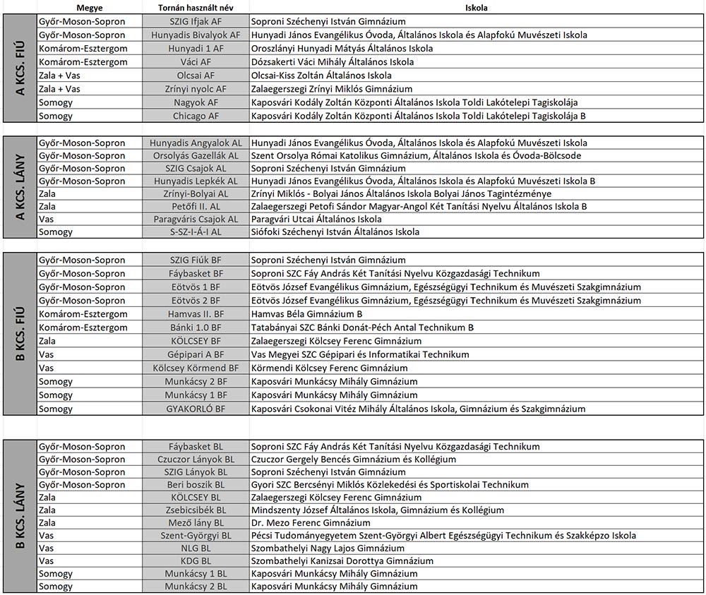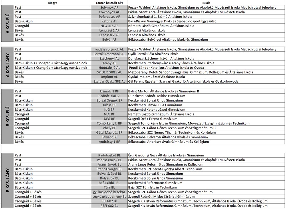 Alább elérhető a B33 DIÁKOLIMPIA régiós döntőibe bejutott csapatok listája.